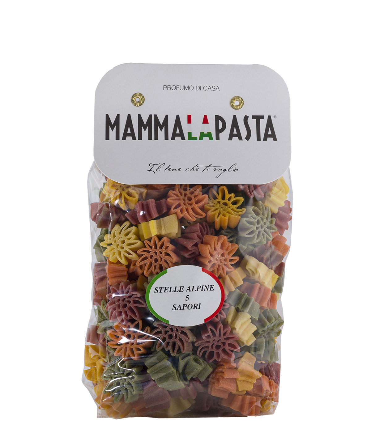 Ingredients: durum wheat semolina, dehydrated spinach powder 3%, beet powder 3%, dehydrated tomato powder 2%, turmeric 2%. Contains gluten.