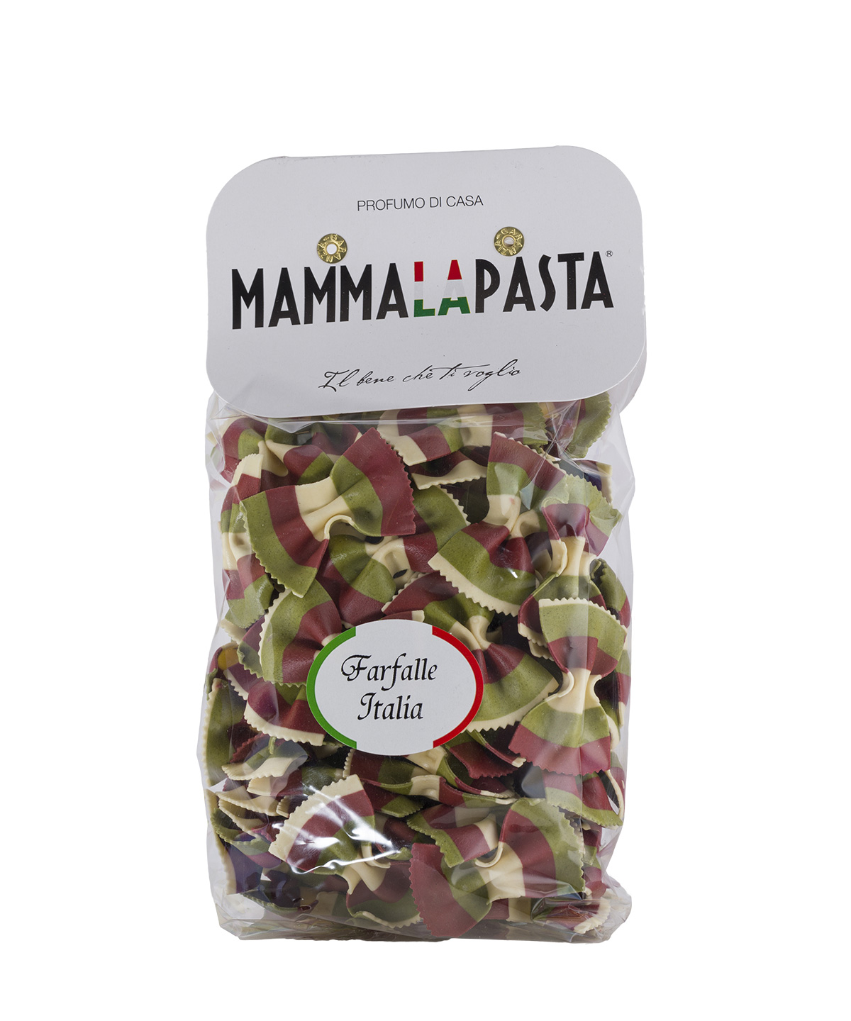 Ingredients: durum wheat semolina, dehydrated spinach powder 3 percent, beet powder 3 percent, dehydrated tomato powder 2 percent